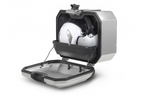 Unikátní integrovaný mechanismus zámku a madla umožňuje jednoduché ovládání jednou rukou a snadnou demontáž z motocyklu.