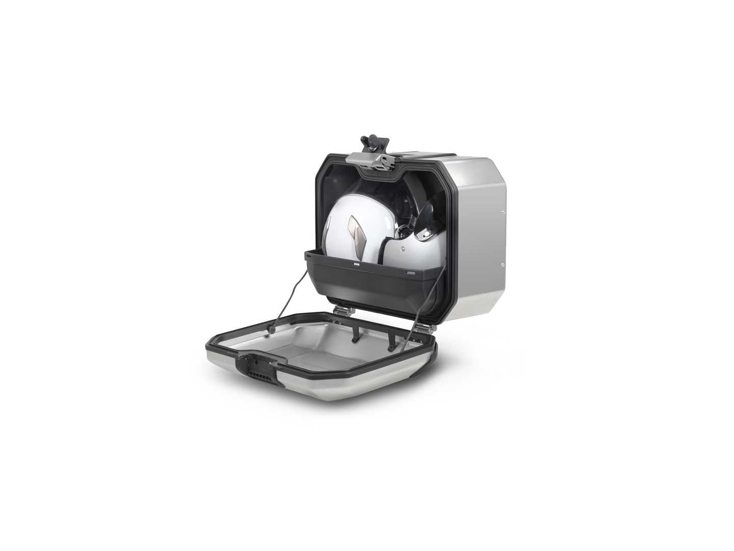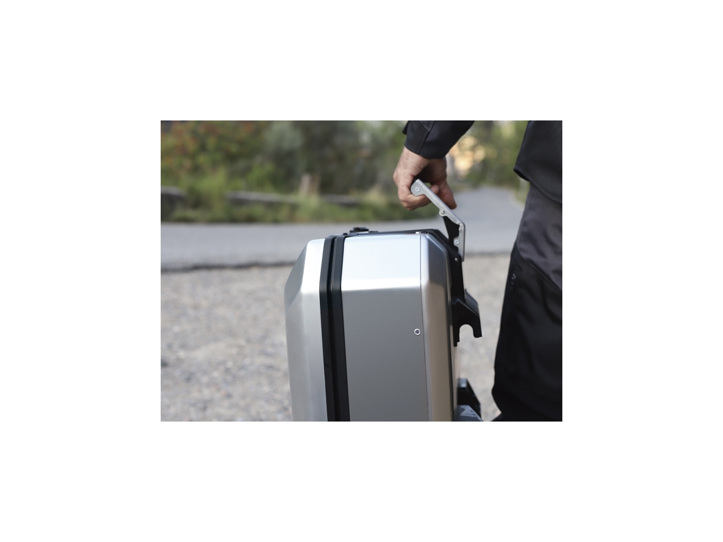 Unikátní integrovaný mechanismus zámku a madla umožňuje jednoduché ovládání jednou rukou a snadnou demontáž z motocyklu.