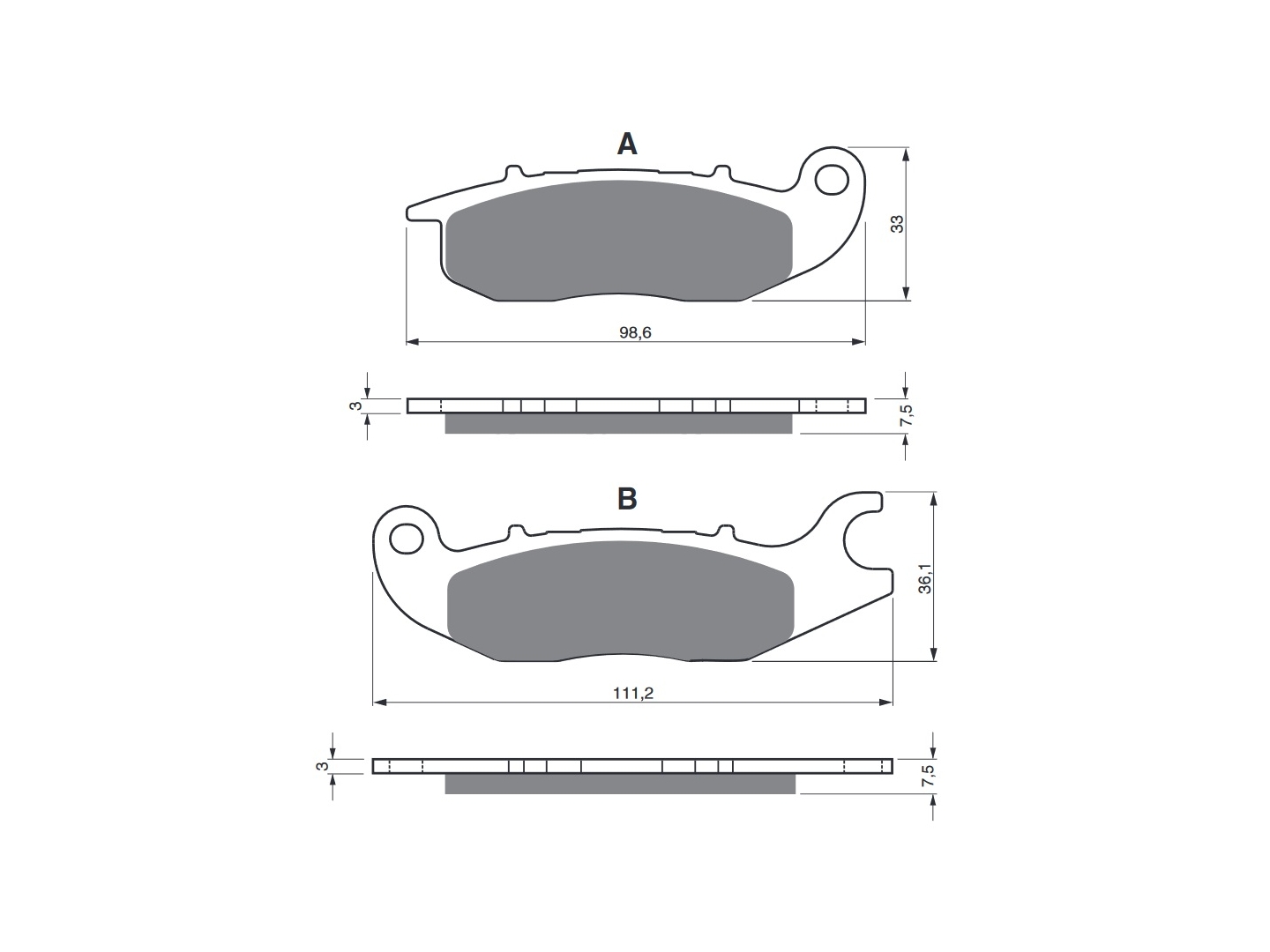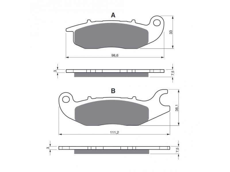 Sintrované brzdové destičky pro lehčí motocykly a běžné použití. Silniční typy mají homologaci TÜV.