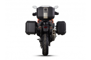 Kompletná sada čiernych hliníkových kufrov SHAD TERRA BLACK , 37 litrov vrchný kufor, 36/47 litrov bočné kufre, vrátane montážnej sady a platni SHAD KTM Super Adventure 1290 (R, S)