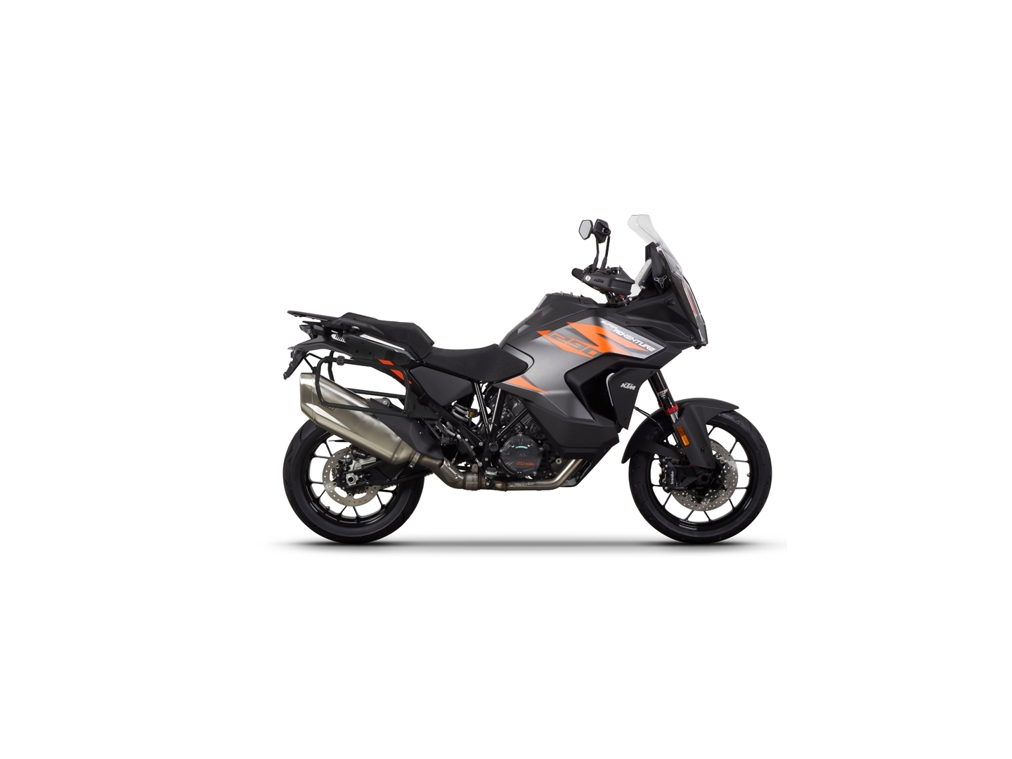 Kompletná sada čiernych hliníkových kufrov SHAD TERRA BLACK , 37 litrov vrchný kufor, 36/47 litrov bočné kufre, vrátane montážnej sady a platni SHAD KTM Super Adventure 1290 (R, S)