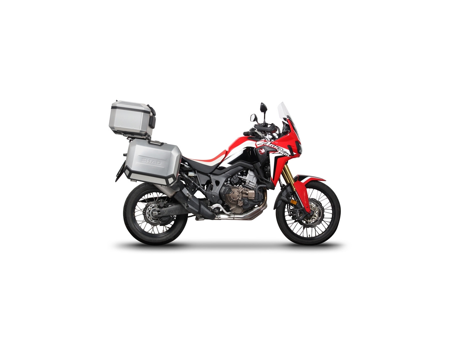 Kompletná sada hliníkových kufrov SHAD TERRA, 37 litrový vrchný kufor, 36/47 litrový bočné kufre, vrátane montážnej sady a platni SHAD HONDA CRF 1000 Africa Twin