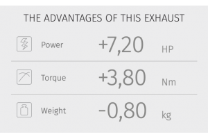 Vyroben z černé nerezové oceli. Efekt "Black Moon" získaný speciálními procesem lakování na bázi keramiky dodává výfuku agresivní vzhled.