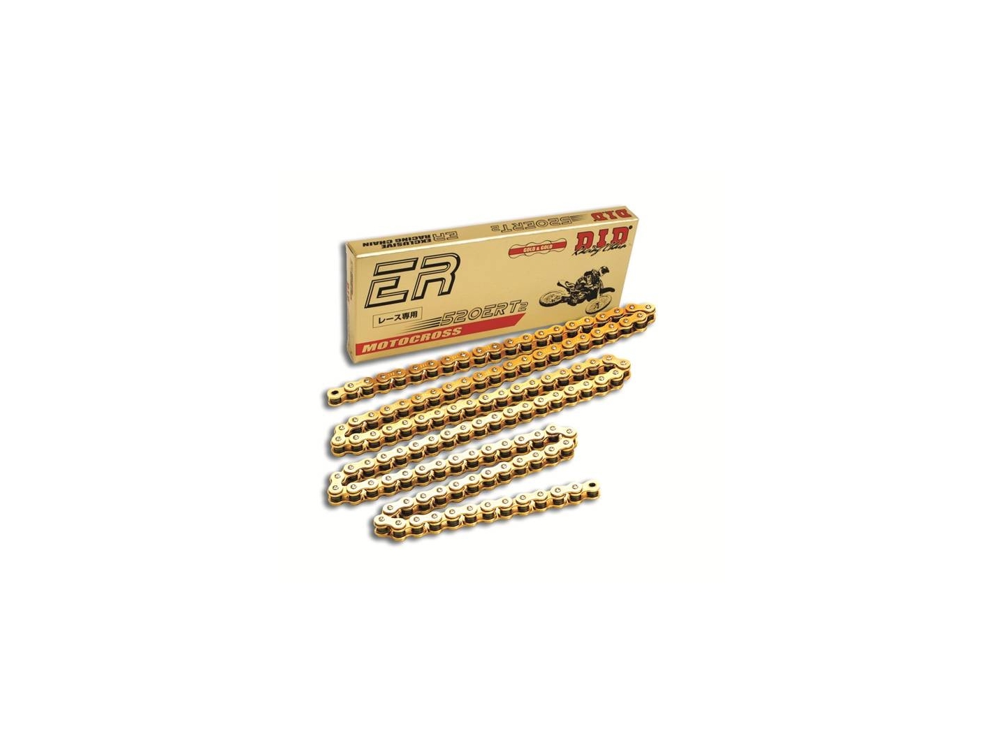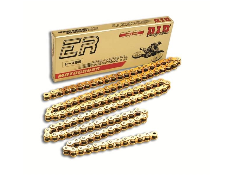 D.I.D Motokrosový závodní řetěz, pevnost 36,0kN, 125cc-450cc, 116 článků, zlatá/zlatá barva, spojka RJ