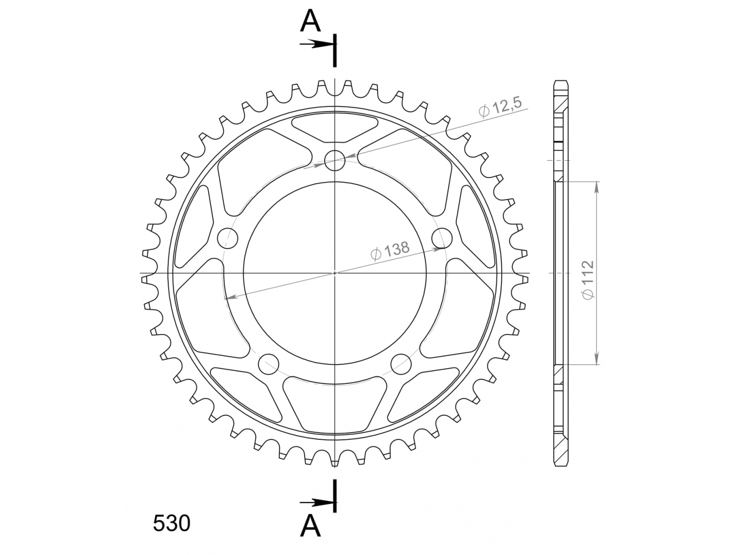 Pevnější zuby = vyšší životnost řetězové sady až o 10%. Rozeta 45z, řetěz 530.