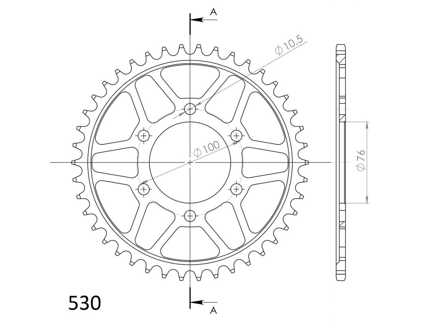 Pevnější zuby = vyšší životnost řetězové sady až o 10%. Rozeta 42z, řetěz 530.