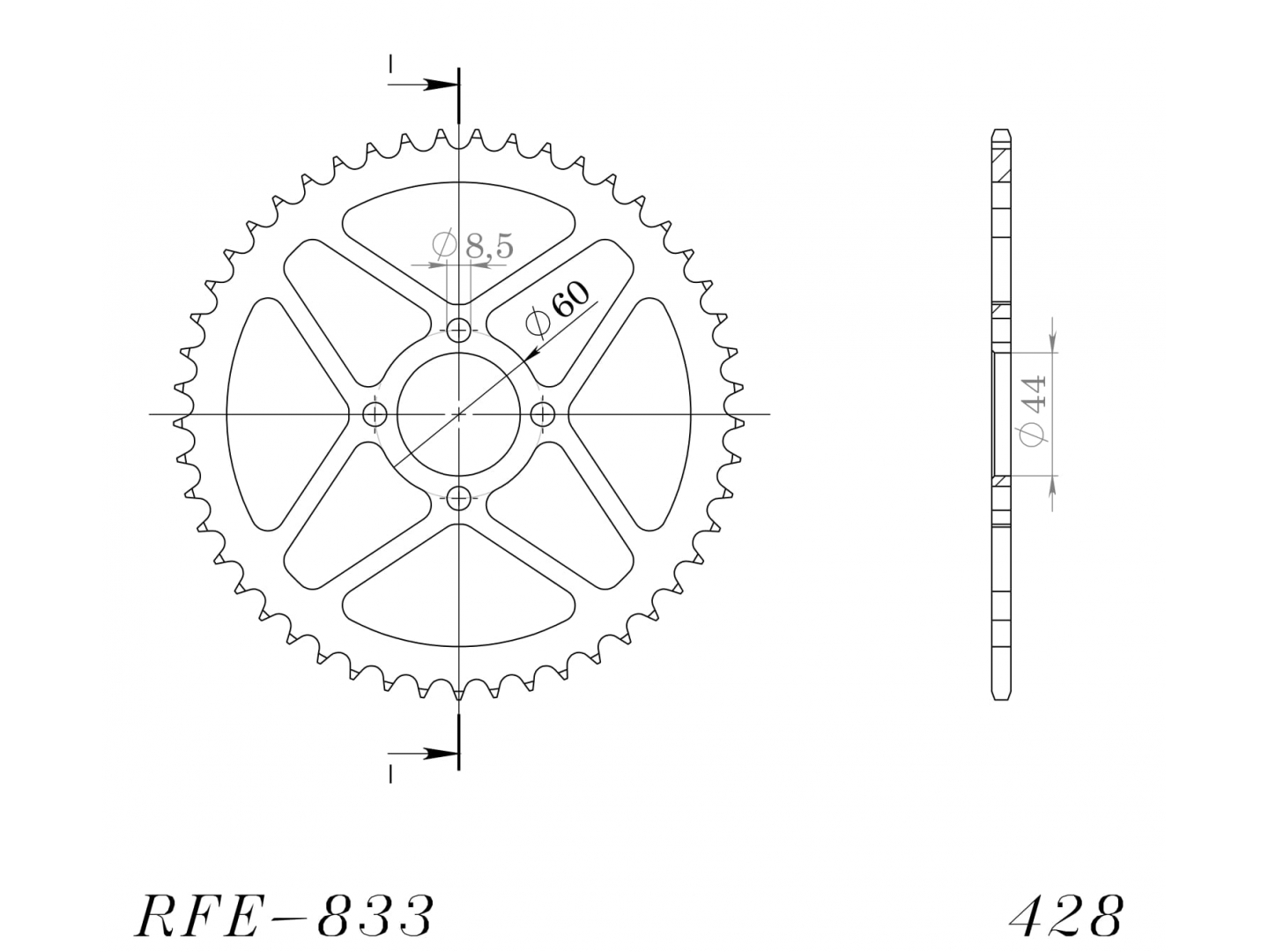 Reťazová rozeta SUPERSPROX RFE-833:49-BLK čierna 49 zubov,428