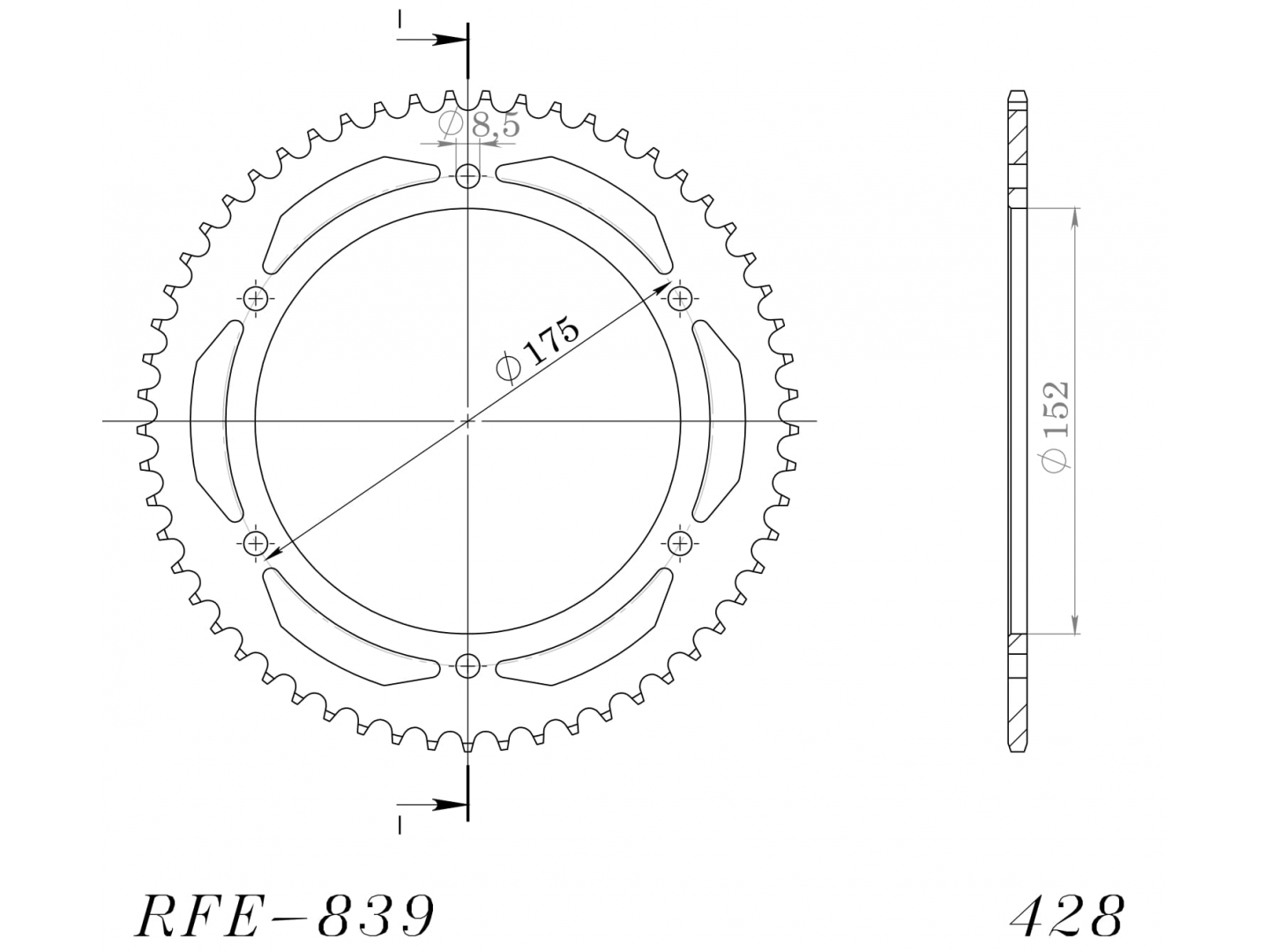 Reťazová rozeta SUPERSPROX RFE-839:57-BLK čierna 57 zubov,428
