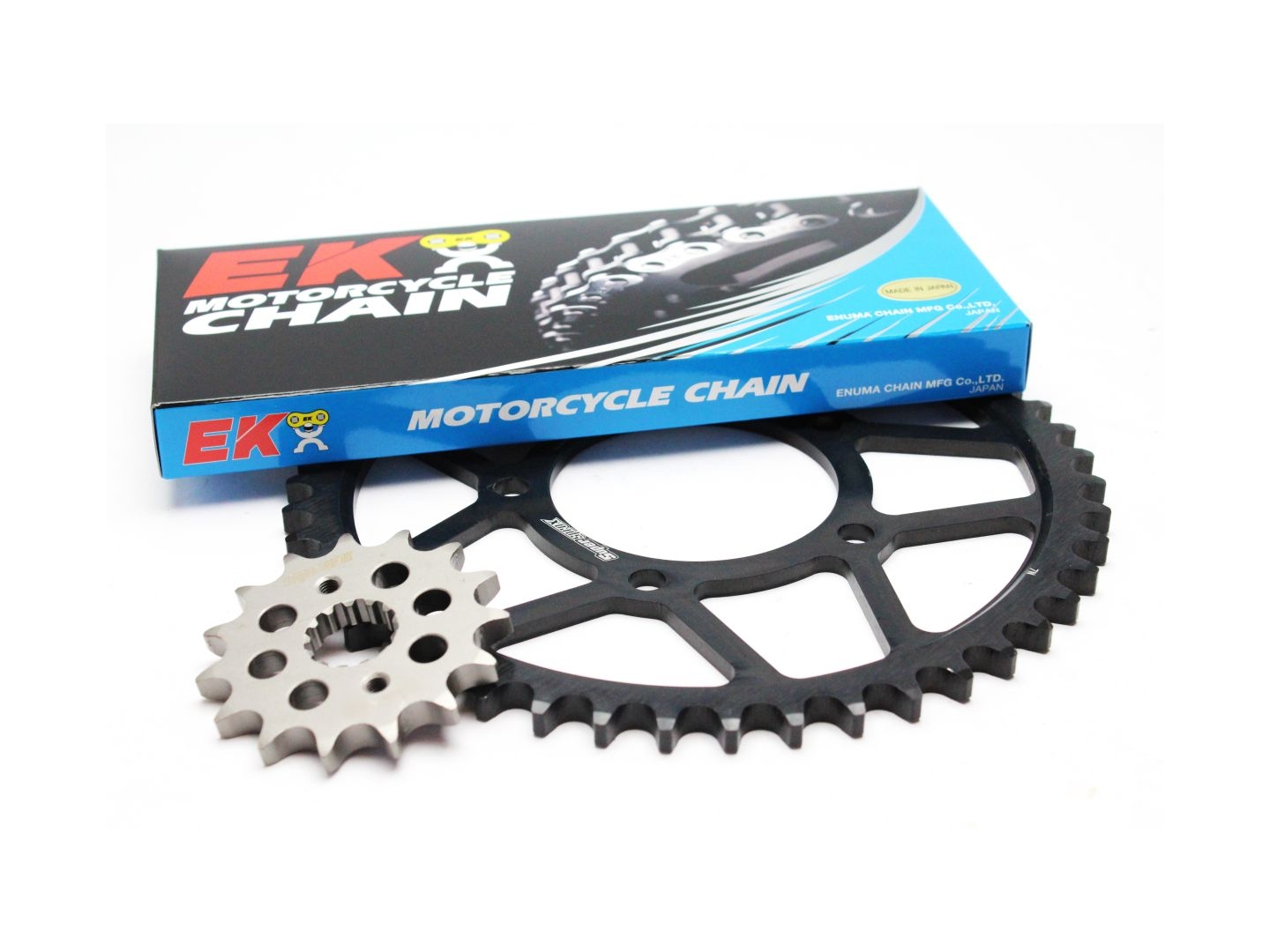 Řetězy EK vyrábí japonská firma Enuma Chain již od druhé světové války. Ano, takhle dlouho. Ke všemu, co dělají, přistupují s pověstnou japonskou precizností a zároveň nepřestávají inovovat. Přišli například jako první s těsněním řetězu O-kroužkem, který prodlužuje životnost řetězu až o 50 % oproti netěsněnému řetězu. Poměrně novinkou je i technologie ZST. Díky ní nemusíte opakovaně napínat řetěz během záběhu = cca prvního tisíce kilometrů.