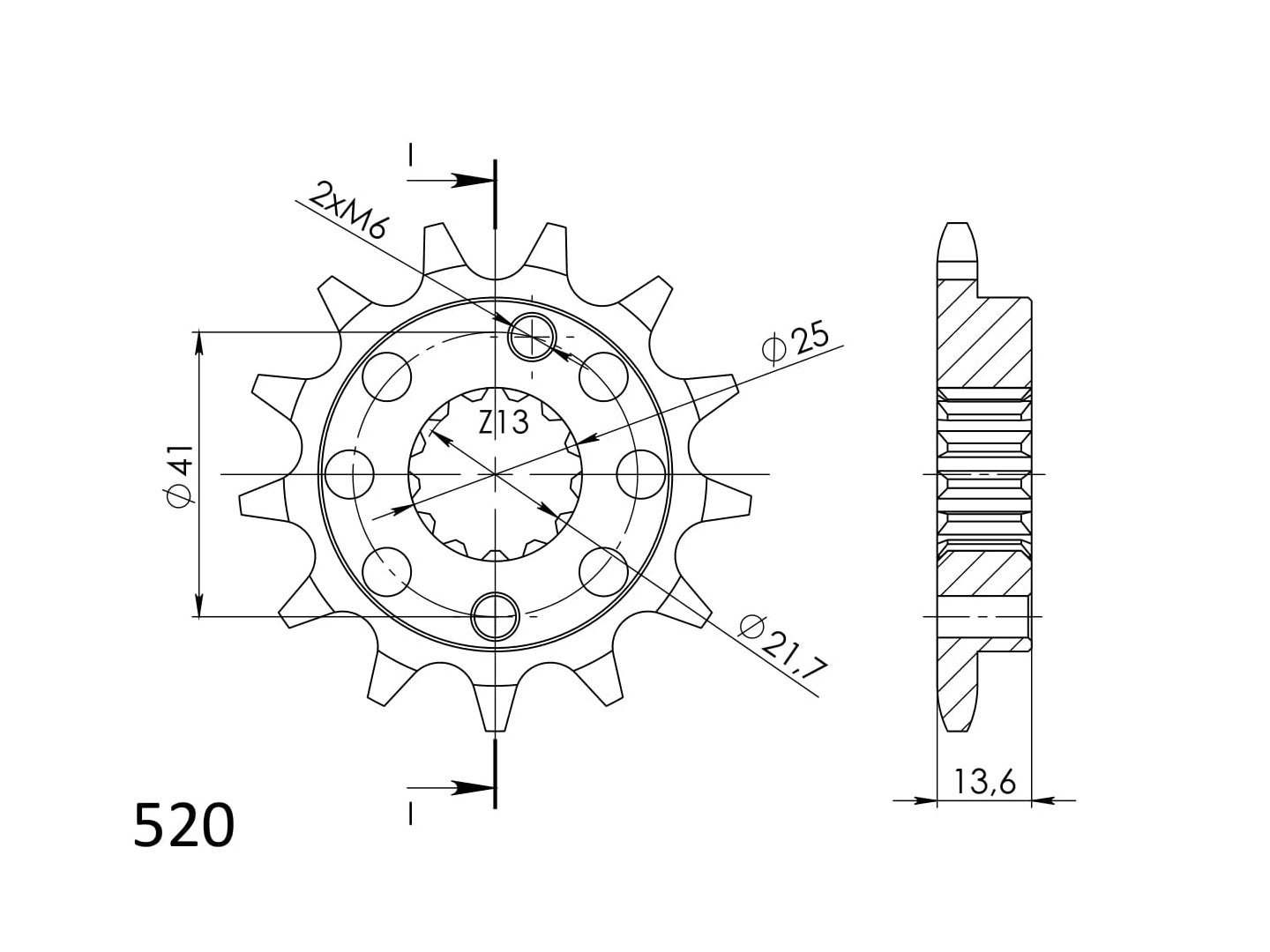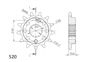 Pevnější zuby = vyšší životnost řetězové sady až o 10%. Kolečko 14z, řetěz 520.