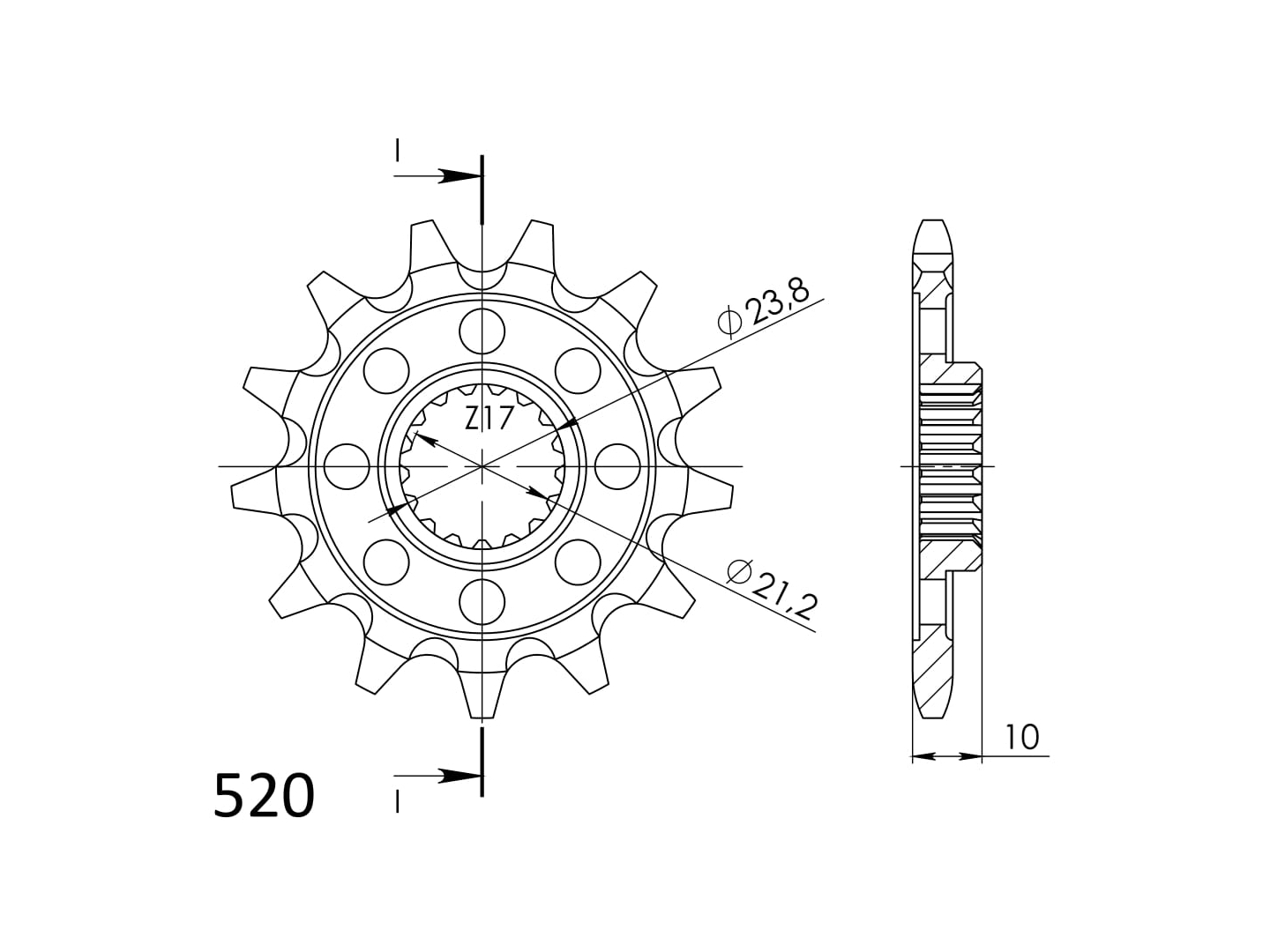 Pevnější zuby = vyšší životnost řetězové sady až o 10%. Kolečko 12z, řetěz 520.