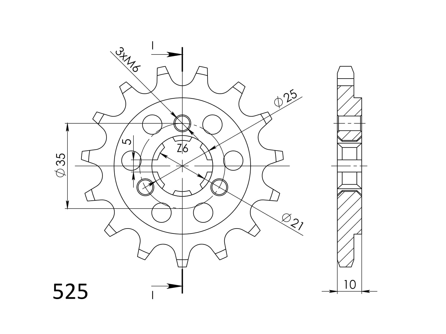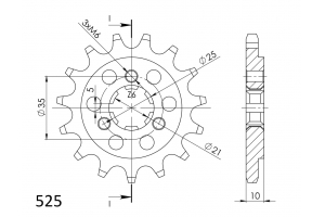 Pevnější zuby = vyšší životnost řetězové sady až o 10%. Kolečko 14z, řetěz 525.
