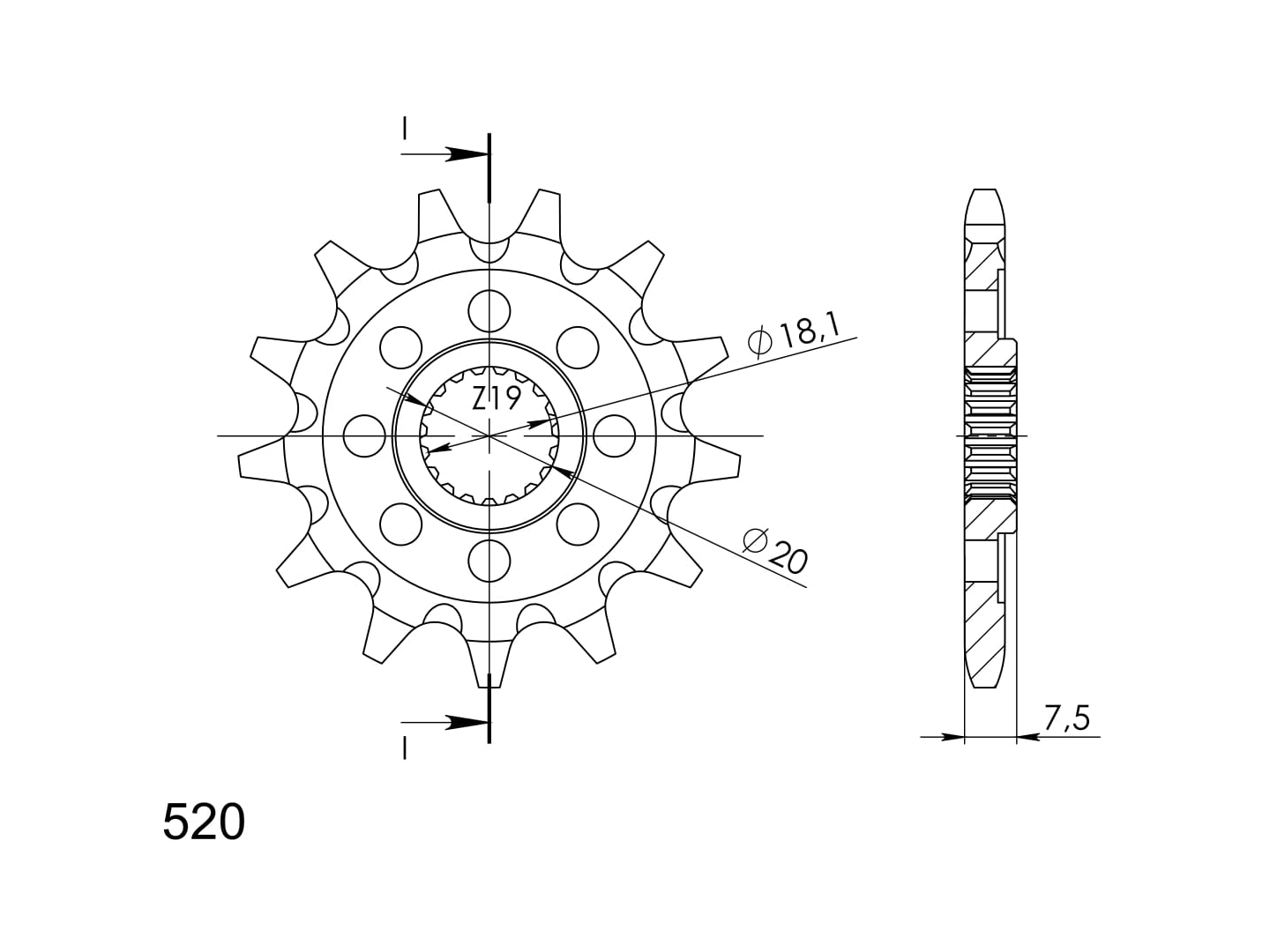 Pevnější zuby = vyšší životnost řetězové sady až o 10%. Kolečko 14z, řetěz 520.