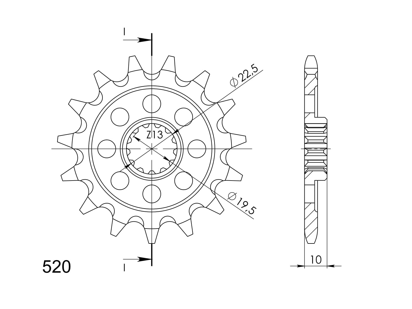 Pevnější zuby = vyšší životnost řetězové sady až o 10%. Kolečko 15z, řetěz 520.