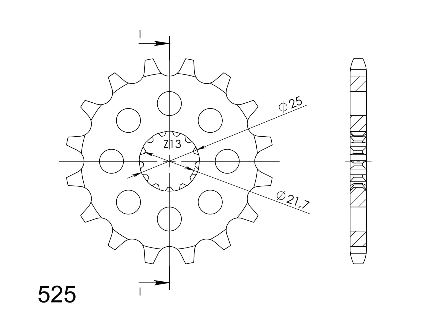 Pevnější zuby = vyšší životnost řetězové sady až o 10%. Kolečko 14z, řetěz 525.