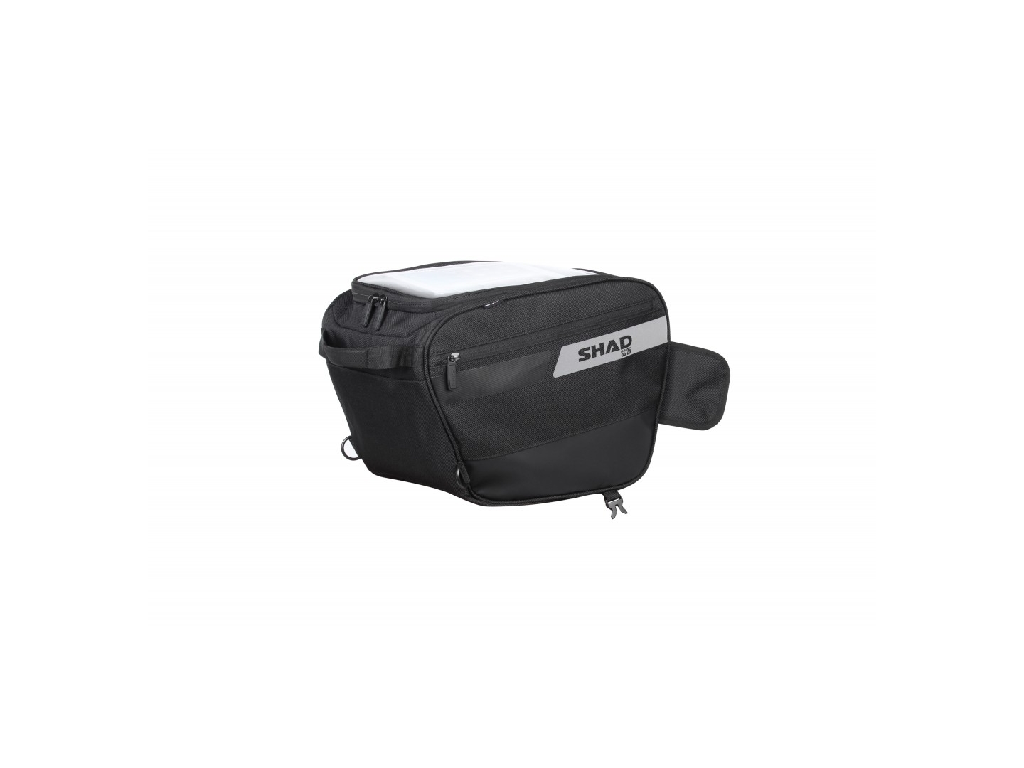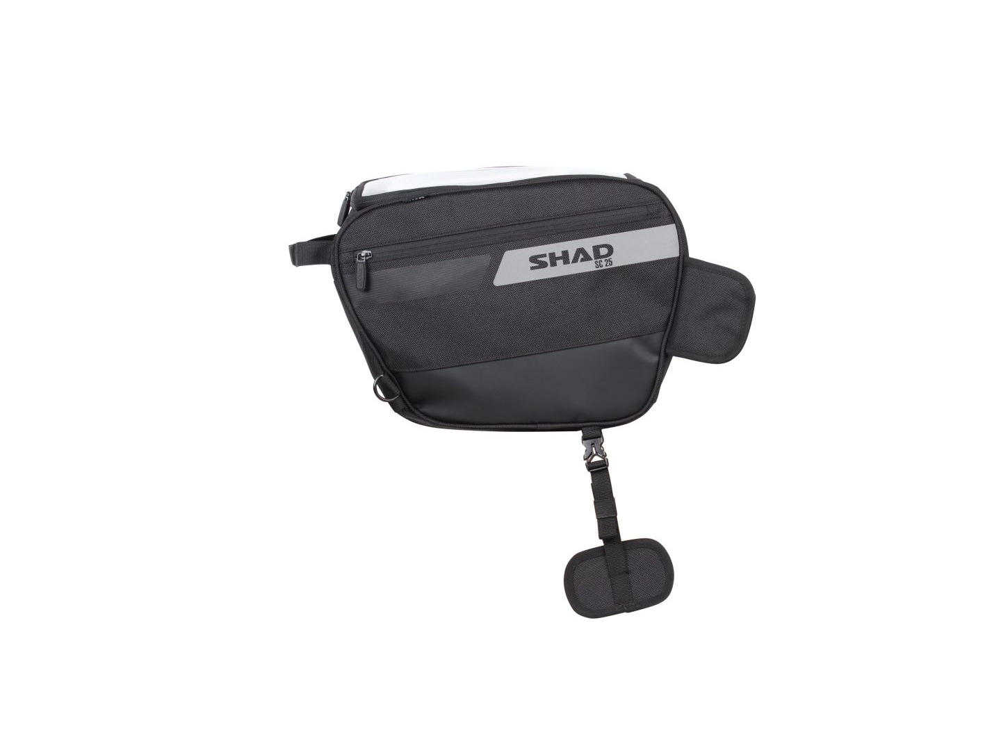 SC25 je taška na skútr s 2 bočními kapsami a kapacitou pro jednu helmu. Obsahuje horní přihrádku pro mapy, tablety, GPS s dotykovým displejem.