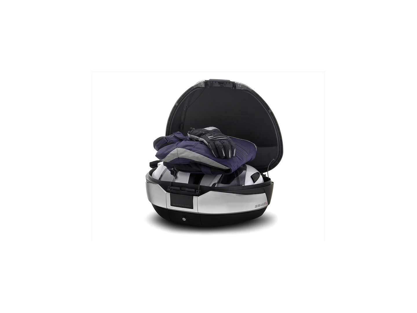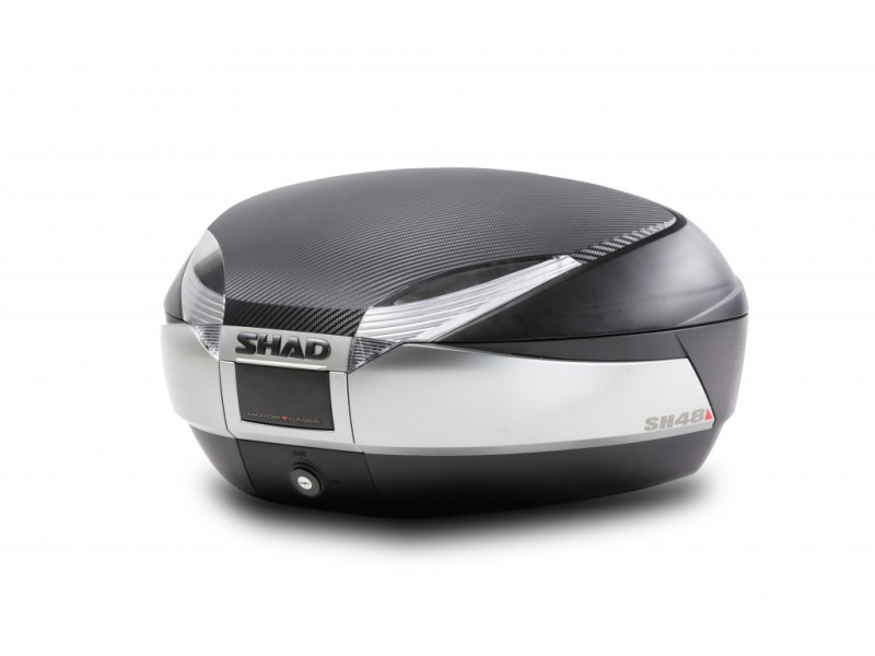 SH48 prémiový kufr pro dvě XXL helmy. Dostupná opěrka, nosič, brzdové světlo a vnitřní taška. Včetně plotny. Opěrka není součástí.