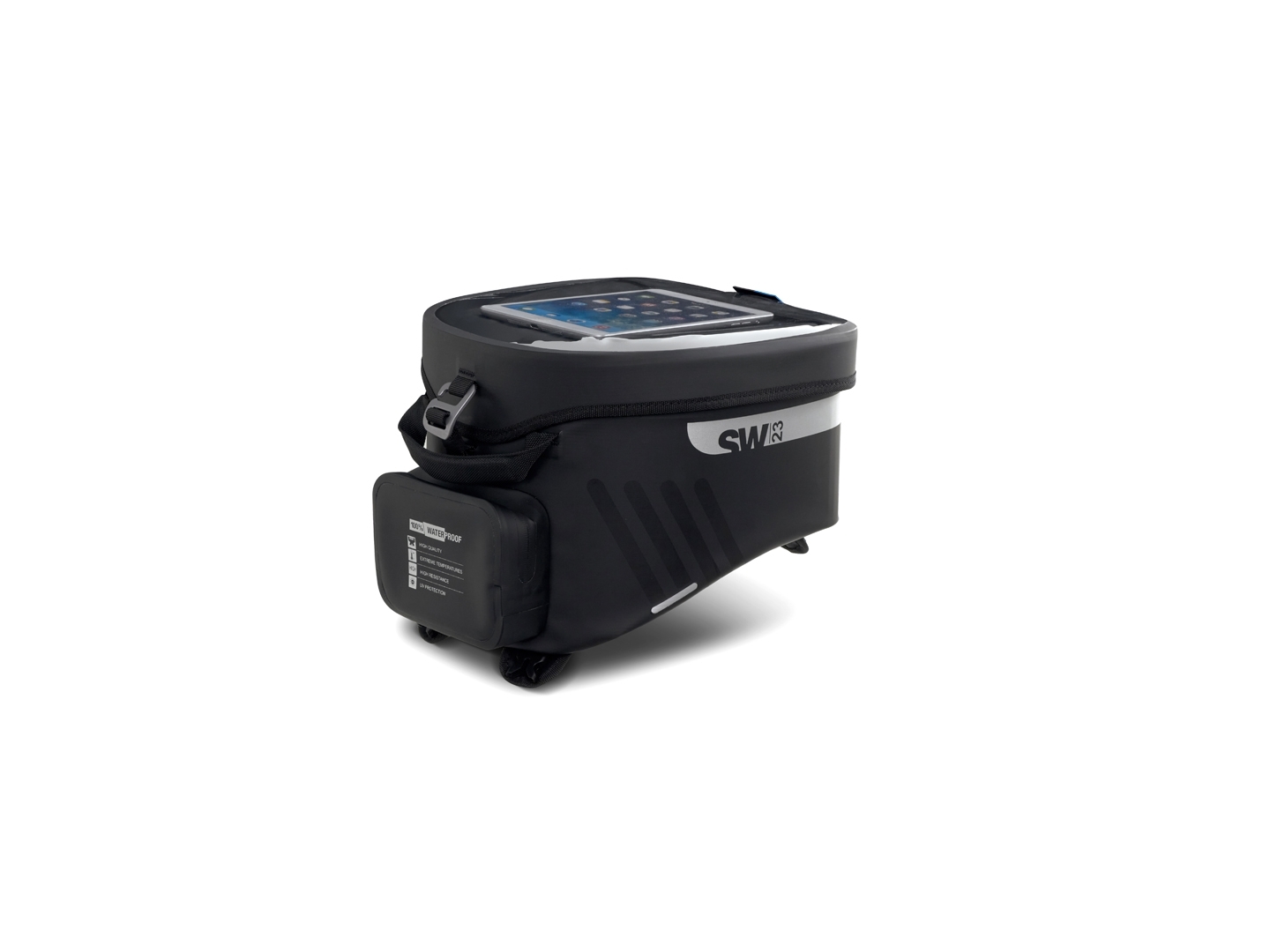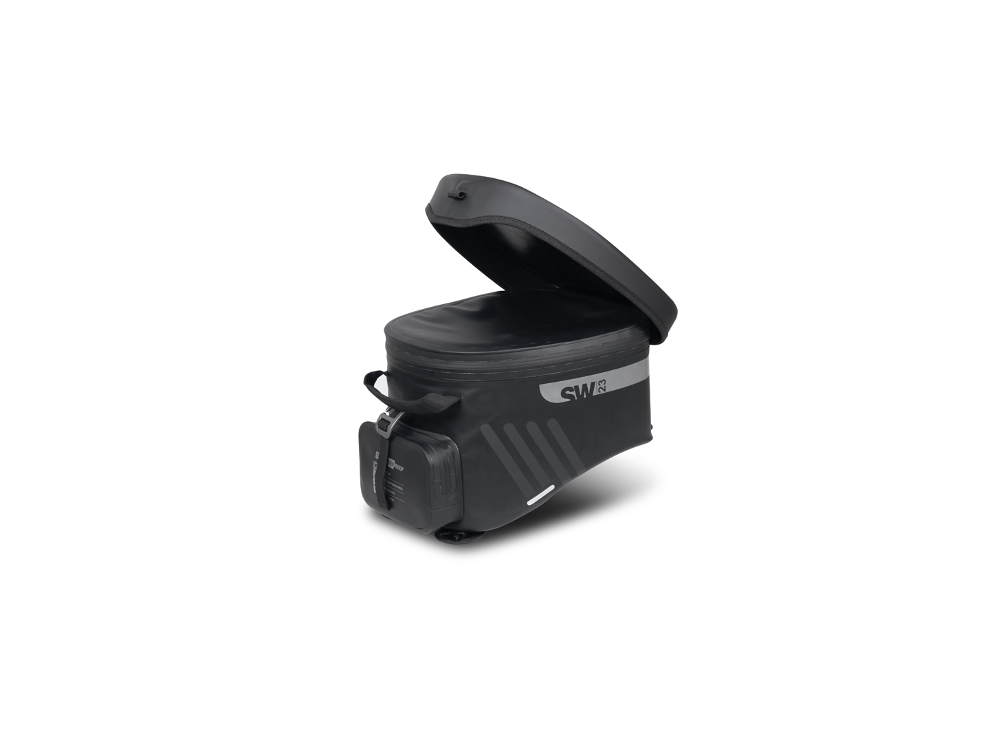 Vodotěsný tankvak o objemu 14 litrů s univerzálním popruhovým systémem pro instalaci na plastové nebo kovové nádrže. Volitelný 4-bodový magnetický systém pro kovové nádrže (Ref. X1SL11). Klopě, která zcela zakrývá voděodolné zipy, je hlavní komora plně vodotěsná a ochrání všechny cennosti.