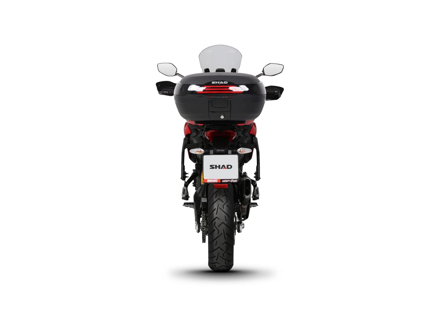 Stejně jako všechny vrchní kufry SHAD (kromě TR48/TR37) je i kufr SH46 dodáván s plotnou a sadou montážních šroubů.